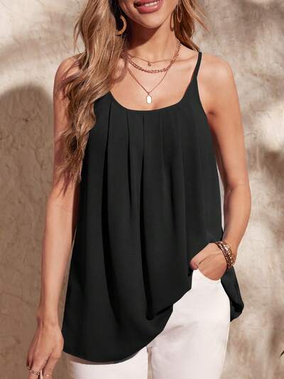 Solid Plicated Detail Cami Top