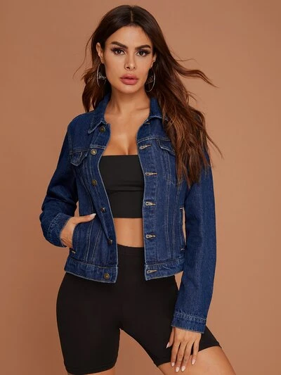 Button Front Flap Pocket Trucker Denim Jacket-36%