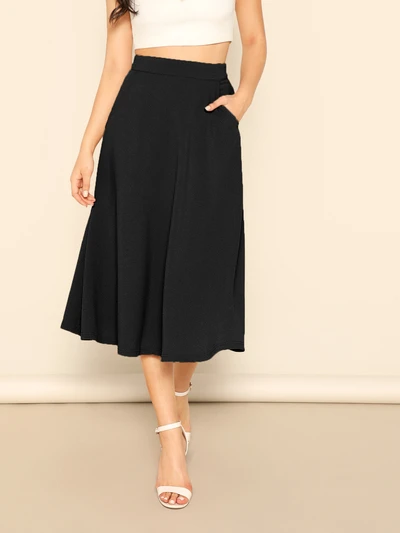 Solid Slant Pocket Swing Skirt