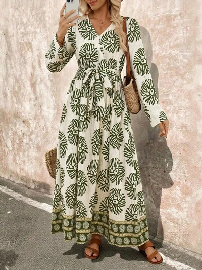 Fall/Winter Printed Midi Dress, Elegant Casual Dress,Fall Women Clothes,Teacher Dress,Going Out Dress Women,Business Casual Woman,Flowy Dress,Striped Print Dress,Women's Shirt-Style Tie Dress,Glamour Dress,Lack Dress