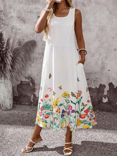 Women Floral Print Sleeveless Casual Vacation Dress