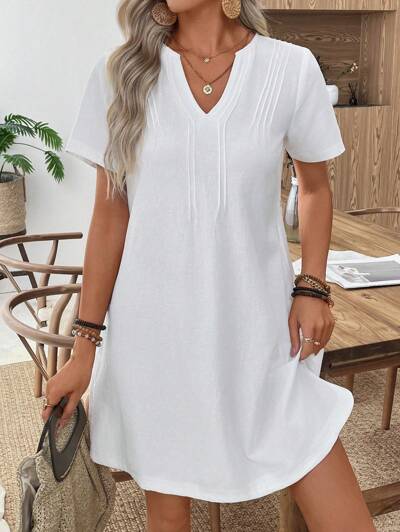 Women's Solid Color V-Neck Short Sleeve Casual Mini Dress For Summer
