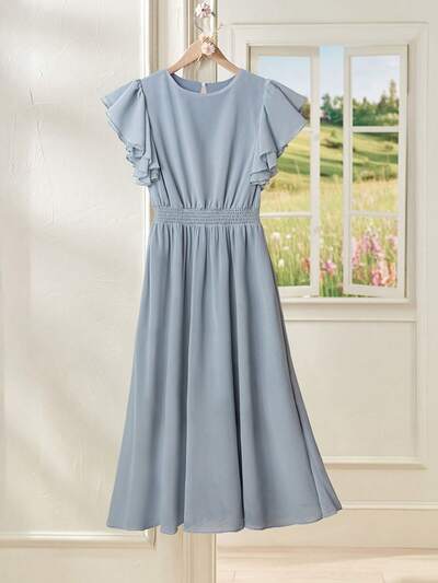 Square Neck Short Sleeve Mid-Length Casual Dress, Spring/Summer, Tea Party Dress