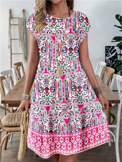 Women's Floral Print Ruffle Sleeve Elegant Dress, Suitable For Vacation-26%