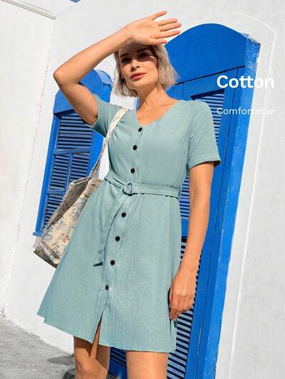 Women Short Casual Dress, Short Sleeve Simple Fashionable Everyday Wear-32%