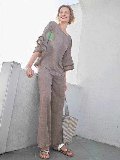 Women Sleeveless Casual Top And Pants 2 Pieces Set-38%