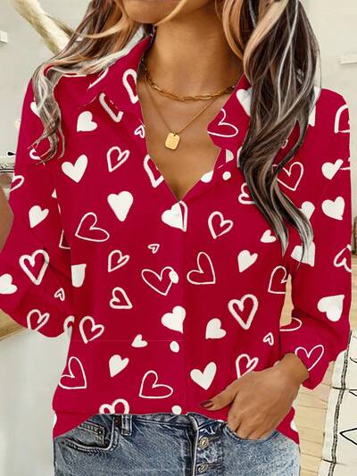 Casual Heart Pattern Loose Long Sleeve Cardigan Women's Shirt, Suitable For Autumn/Winter Valentine's Day Valentine Gift-60%