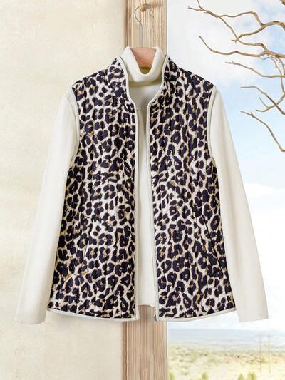 Valentine's Day Cheetah Print Women Leopard Print Sleeveless Zipper Jacket, Casual & Chic For Daily Wear, Winter-60%