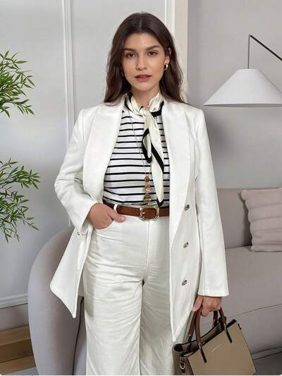 Women's Solid Color Lapel Neck Double-Breasted Long Sleeve Casual Overcoat, Autumn/Winter-45%