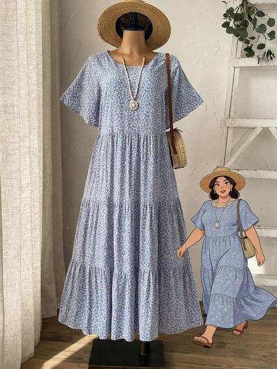 Plus Size Women Casual Ditsy Floral Dress,Summer Outfit For Women , Vacation Outfits Women,Country Style For Women,Casual Dresses For Women,Floral Dress For Women Maxi Dress For Women Long Casual Bohemian Dresses For Women Picnic Dresses For Women Modest Summer Dresses For Women
