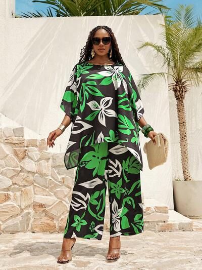 Plus Size Women Floral Print High Low Hem Shirt And Wide Leg Pants Casual 2 Pieces Set Summer Summer Outfits Spring Clothing Spring Outfit Festival Outfits For Women Beach Outfit For Women Vacation Outfits Women Holiday Outfits For Women Summer Holiday Outfits Country Concert Outfit Women's Country Clothing Casual Sets For Women Dress For Women Plus Size Dress Plus Size 2 Piece Set