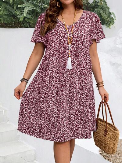 Plus Size Women's Summer Ditsy Floral Ruffle Sleeve Holiday Dress