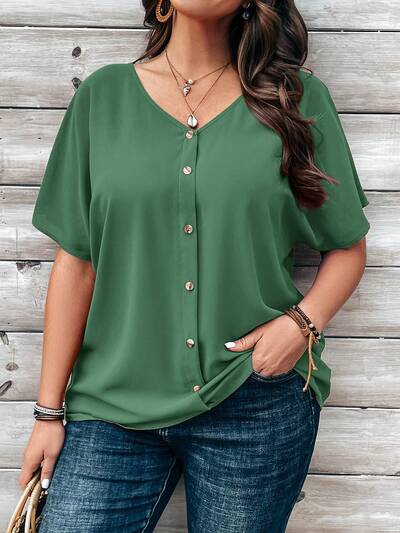 Plus Size Women's Orange Button Embellished Short Sleeve Shirt For Spring Plus Size Button Down Shirt Plus Size Summer Shirt Plus Size Casual Tops