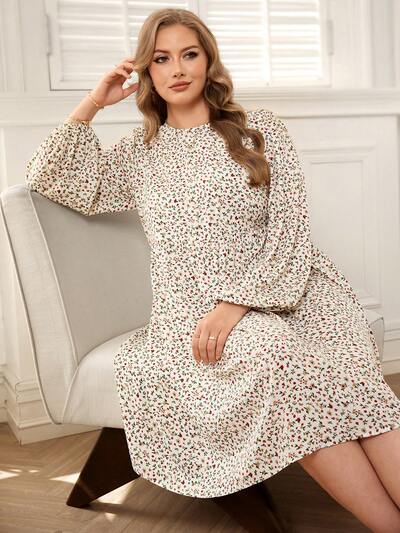 Plus Size Ditsy Floral Dress With Bow Decor On Back,Wedding Guest Dress For Women Bow Back Dress Long Sleeve Summer Dresses Cottagecore Dress Floral Print Dress