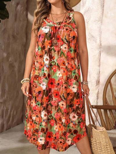 Plus Size Women's Summer Casual Vacation Floral Print Round Neck Sleeveless Dress ,Women Summer Dresses, Plus Plus Size Hawaiian Dress ,Summer Floral Dress,Spring Break Outfits ,Vacation Outfits Women ,Holiday Outfits For Women,Going Out Outfits,2026 New Clothes,Simple And Fashionable For Everyday Wear, Sleeveless Summer Dress, Floral Print Sundress, Women Summer Dresses Plus
