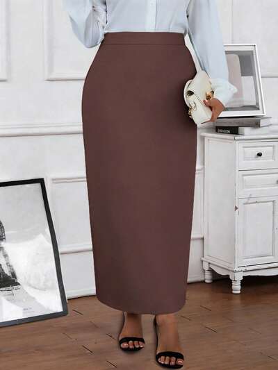 Plus Size Women Solid Color A-Line Skirt, Casual Office Wear,Spring Break, Vacation Women, Holiday For Women,Going Out,2026 New,Simple And Fashionable For Everyday Wear
