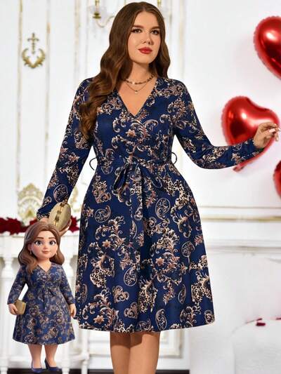 Plus Size Women's Elegant Party Casual Floral Print Dress, ,Going Out Outfits, New Clothes,Simple And Fashionable For Everyday Wear, Plus Size , Outfit For Women ,New Year Clothes,Thanksgiving Outfit For Women, Black Floral Dress, Flower Dress Woman, Long Sleeve Dresses, Modest Dress For Women, Elegant Dress,Date Night Outfits Women,Flowy Dress,Spring/Summer/Vacation