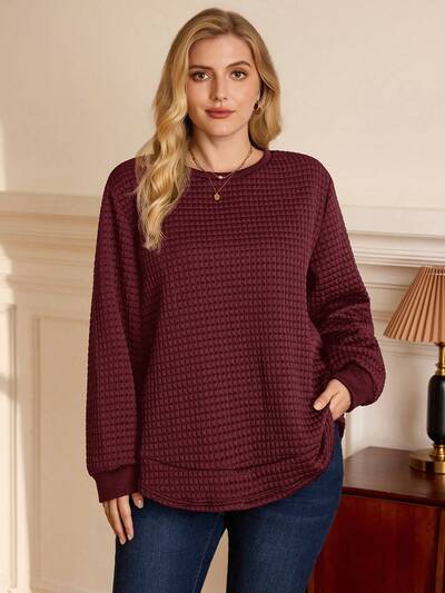 Plus Size Women Casual Solid Color Textured Sweatshirt Sweater Plus Size Plus Size Long Sleeve Fall Tops Women Plus Size Sweatshirts Plus Size Solid Color Ribbed Knit T Shirt/Winter