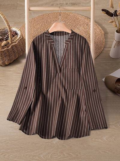 Women's Striped V-Neck Long Sleeve Casual Pocket Textured Shirt Winter Clothes For Women