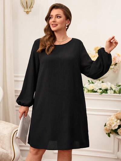 Plus Size Women Fall/Winter Country Casual Solid Color Round Neck Long Sleeve Dress, Autumn/Winter,Going Out Outfits,2025 New Clothes,Simple And Fashionable For Everyday Wear, Plus Size Winter Clothes, Christmas Outfit For Women ,New Year Clothes,Thanksgiving Outfit For Women ,New Year Dress,Flowy Dress, Long Sleeve Dress Plus