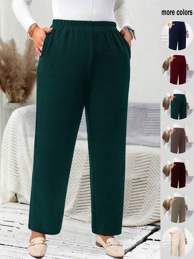 Plus Size Women Fall/Winter Casual Daily Long Pants With Pockets,Autumn/Winter,Going Out,2025 New,Simple And Fashionable For Everyday Wear, Plus Size Winter, Christmas For Women, New Year,Thanksgiving For Women
