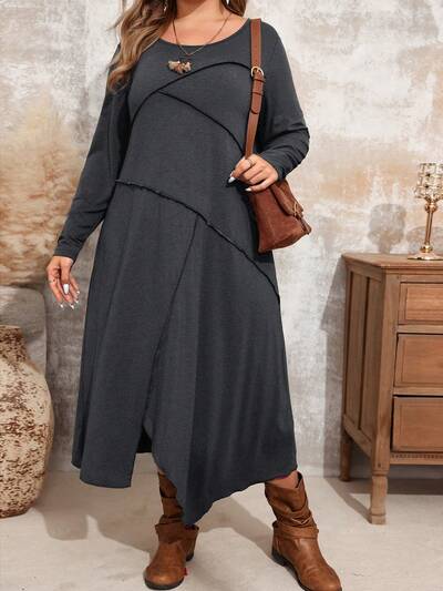 Plus Size Casual Round Neck Long Sleeve Fashionable Comfortable Fall Dress Winter Clothes For Women Cozy Fall And Winter Clothes For Women Country Style For Women Country Concert Outfit