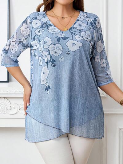 Plus Size Women's Floral Casual Thin See-Through Long-Sleeved Sweater Spring And Autumn,Fall Women's Clothes