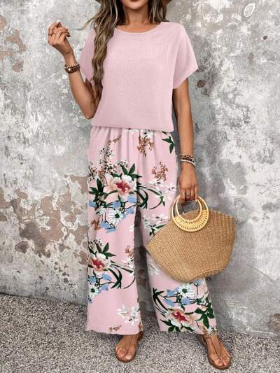 2pcs Casual Floral Pattern Women Fitted Summer 2 Pieces Set, Versatile For Spring And Summer