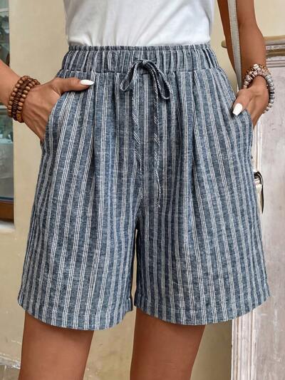 Women Striped Minimalist Casual Tie-Up Shorts Going Out Outfit Summer Outfit For Women Summer Holiday Outfits Going Out Outfits Border Joggers Women Shorts For Women Women's Shorts Summer Women Shorts Casual Shorts For Women Holiday Women Shorts Bermuda Short Outfits For Women