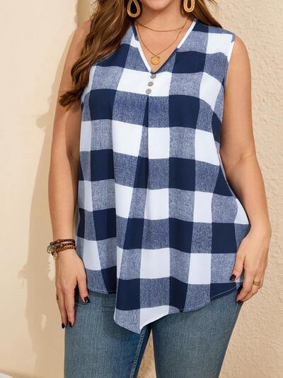 Plus Size Women Plaid V-Neck Button Design Casual Sleeveless Shirt Summer Tops Summer Outfits Summer Clothes Spring Dress Spring Outfit Women Spring Clothing Beach Vacation Outfits For Women Vacation Dress Bohemian Festival Outfits For Women Beach Outfits For Women Women Plus Size Tops Women's Tops For Summer Summer Tops Blouse For Women Zanzea Blouses For Women