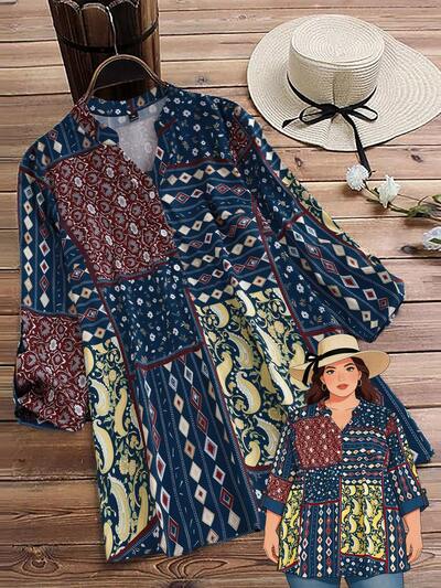 Women's Plus Size Geometric Print Single-Breasted Casual Versatile Daily Wear Shirt,Summer Dresses For Women,Spring Outfit Women ,Vacation Outfits Women Boho Two Pieces Set Boho Western Women's Clothing Bohemian Clothes For Women Patchwork Dress For Women Boho Chic Women's Clothing Boho Casual Top Patchwork Print Women's Top Bohemian Outfit For Women Vintage Pattern Shirt Bohemian Casual Women's Top Women's Vintage Casual Dress Boho Tunic Blouse For Women Bohemian Casual Button-Down Shirt Women's Patterned Long Sleeve Top Bohemian Style Women's Shirt