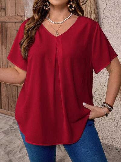 Plus Size V-Neck Ruched Summer Short Sleeve Casual Solid Dressy Top,Country Casual Vacation Outfits Woman,Simple And Fashionable For Everyday Wear,Summer Tops Women,Summer Outfits For Women