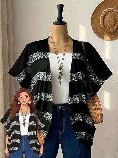 Plus Size Vacation Solid Color Asymmetric Hem Batwing Sleeve Casual Jacket,Spring/Summer Summer Outfits Summer Clothes Spring Outfit Women Spring Clothing Country Style For Women