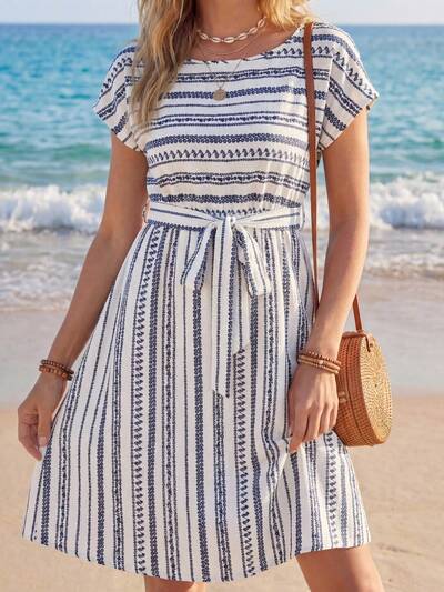 Vestido con estampado de rayas con nudo delantero con bolsillo oculto