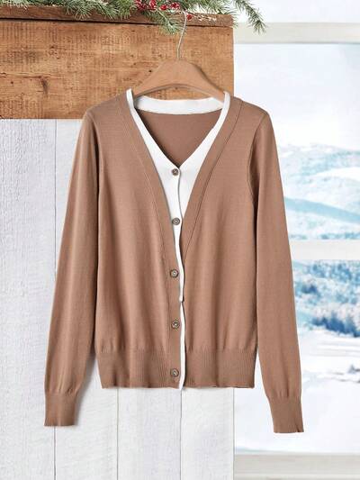 Cárdigan casual de manga larga con cuello en V y botones delanteros de unicolor para mujeres, ropa de otoño e invierno