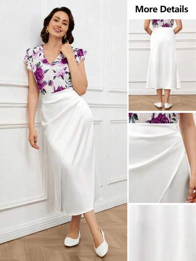 Falda casual con abertura lateral y estampado de flores patchwork para mujer de vacaciones