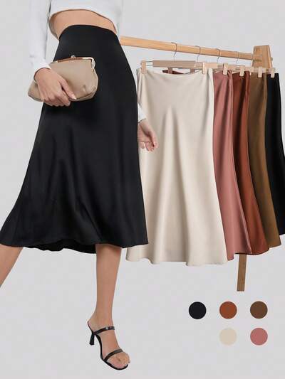 Falda larga de color liso informal para mujer, otoño