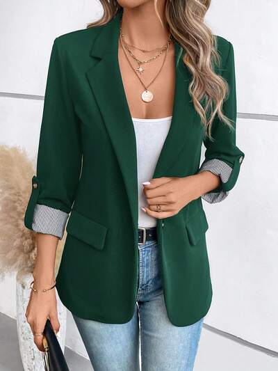 Blazer à manches retroussées en automne/hiver, décontracté-28%