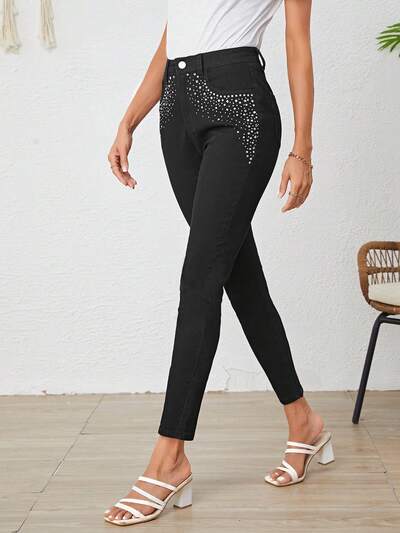 Detalhe De Strass Jeans Skinny