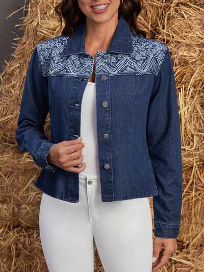 Impressão Paisley Botão Frontal Jaqueta Denim