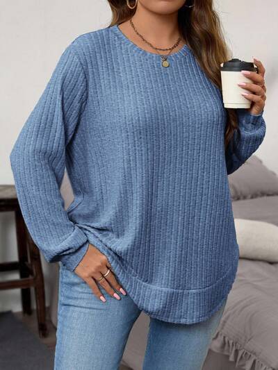 Plus Size Solid Color Casual Long Sleeve T-Shirt, Autumn/Winter Plus Size Ribbed Knit Top Plus Tops For Women Plus Size Long Sleeve Top Plus Size Casual Tops Plus Size Sweater Plus Size Solid Color Ribbed Knit T Shirt-55%