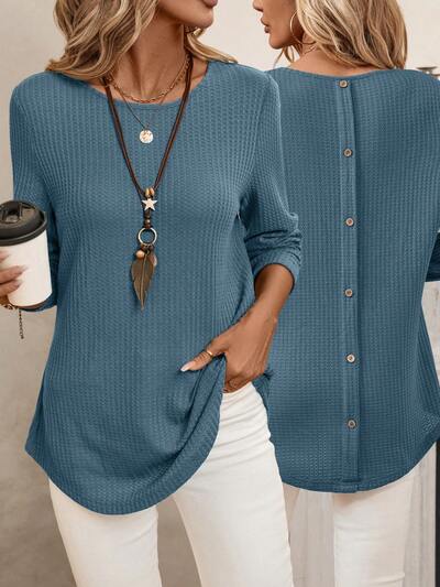 Women's Casual Solid Color Button Back Curved Hem T-Shirt Women Long Sleeve Tops Grey Tops For Women Gray Blouse Women Solid Color T Shirt Tops Women Women Women's Fall Clothes-32%