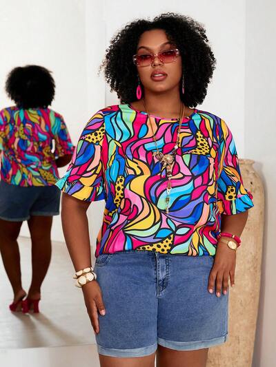 Plus Size Women All-Over Print Round Neck Short Sleeve Casual Pullover Shirt,Vacation Outfits Women,Casual Blouses For Women,Holiday Outfits For Women ,Summer Outfit For Women ,Spring Outfit Women Colorful Tops Plus Size Work Tops Curve Summer Tops Curve Blouse Women's Work Tops Blouse For Women Casual Modern Boutique Tops For Women Colorful Abstract Print Top Oversized T Shirt For Ladies Ruffle Sleeve Top Multi Color Tops Women's Summer Tops Women's Tops And Blouses Printed Blouses Oversized Tops Women's Tops For Summer Woman Tshirt Animal Print Tops Women's Short Sleeve Tops-32%