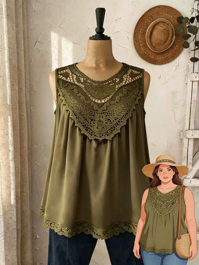 Plus Size Women Lace Patchwork Casual Versatile Daily Wear Top/Summer/Vacation,Spring Clothes Women,Beach Vacation Outfits For Women,Going Out Tops For Women,Vacation Outfits Women, Peplum Top,Green Top Boho Tops Plus Size Boho Women's Tops Bohemian Tops For Women Olive Green Top Plus Size Tops Boho Women's Clothing Tops Plus Size Boho Tops Boho Tops For Women Summer Tops For Women Elegant Lace Tops For Women Bohemian Clothes For Women Boho Chic Women's Clothing Women's Tops For Summer Women's Vest Tops Summer Tops Women Holiday-30%