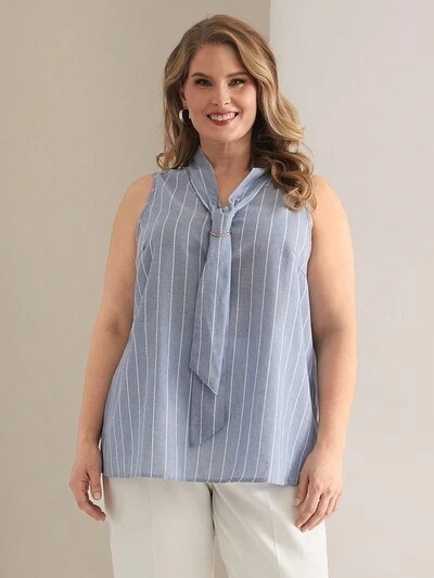 Plus Size Sleeveless Striped Casual Loose Fit Blouse, Daily Wear, Spring For Women, Elegant Women-44%