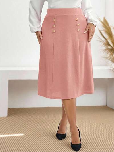 Plus Size Black Elegant Button Up Fitted Elegant Street Style Fall Clothes Fall Skirt-23%