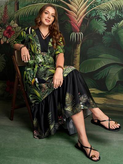Plus Size Women Tropical Plant Print V-Neck Short Sleeve Casual Dress Summer Outfits Beach Vacation Outfits For Women Floral Dress BOHO Clothes Reflora Plus Size Elegant Dress Plus Size Spring Dress Plus Size Vacation Casual Dress Women's Plus Size Dresses Plus Size Women's Summer Outfits Summer Outfits For Women Beach Outfit For Women Casual Vacation Outfits Women Country Concert Outfit Peplum-45%