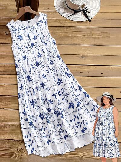 Plus Size Women Floral Print Sleeveless Casual Vacation Dress,Spring Outfit Women,Beach Vacation Outfits For Women,Going Out Outfits,Casual Dresses For Women,Vacation Outfits Women,Floral Dresses For Women,Spring Dresses,Floral Dress For Women Women Sundress Sun Dress Women Summer Dresses For Women High Low Dress For Women Resort Wear Women Vacation Dress Sleeveless Ruffle Dress Floral Print Sundress Plus Size Floral Dress White And Blue Floral Dress Midi Dress Tiered Dress Floral Print Dress Sleeveless Dress Beach Dress Outfit For Women Sleeveless Summer Dress Women's Casual Dress Women's Summer Dresses Tiered Ruffle Dress Women's Beach Dress-27%